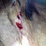 Der Hund wurde in unserer Tierklinik mit einer Bissverletzung vorgestellt. Er wurde daraufhin chirurgisch und mit Antibiotikum versorgt. Da jedoch die Naht wiederholt aufging wurde eine Bakteriologie mit Resistenzbestimmung gemacht. Das Ergebnis – ein multiresistenter Keim. Der Hund kam insgesamt 5 Wochen fast täglich zum Reinigen und Spülen der Wunde.
